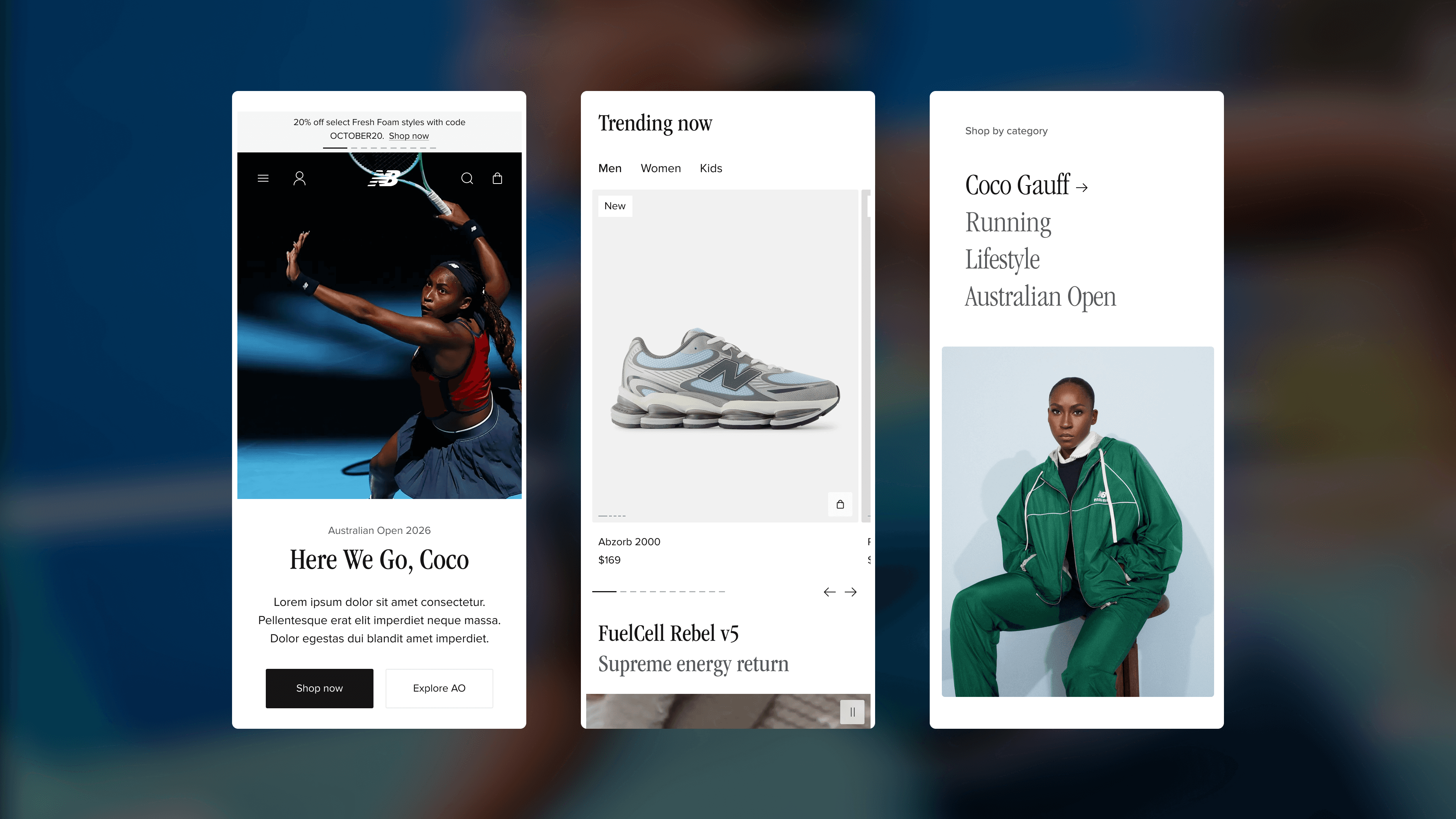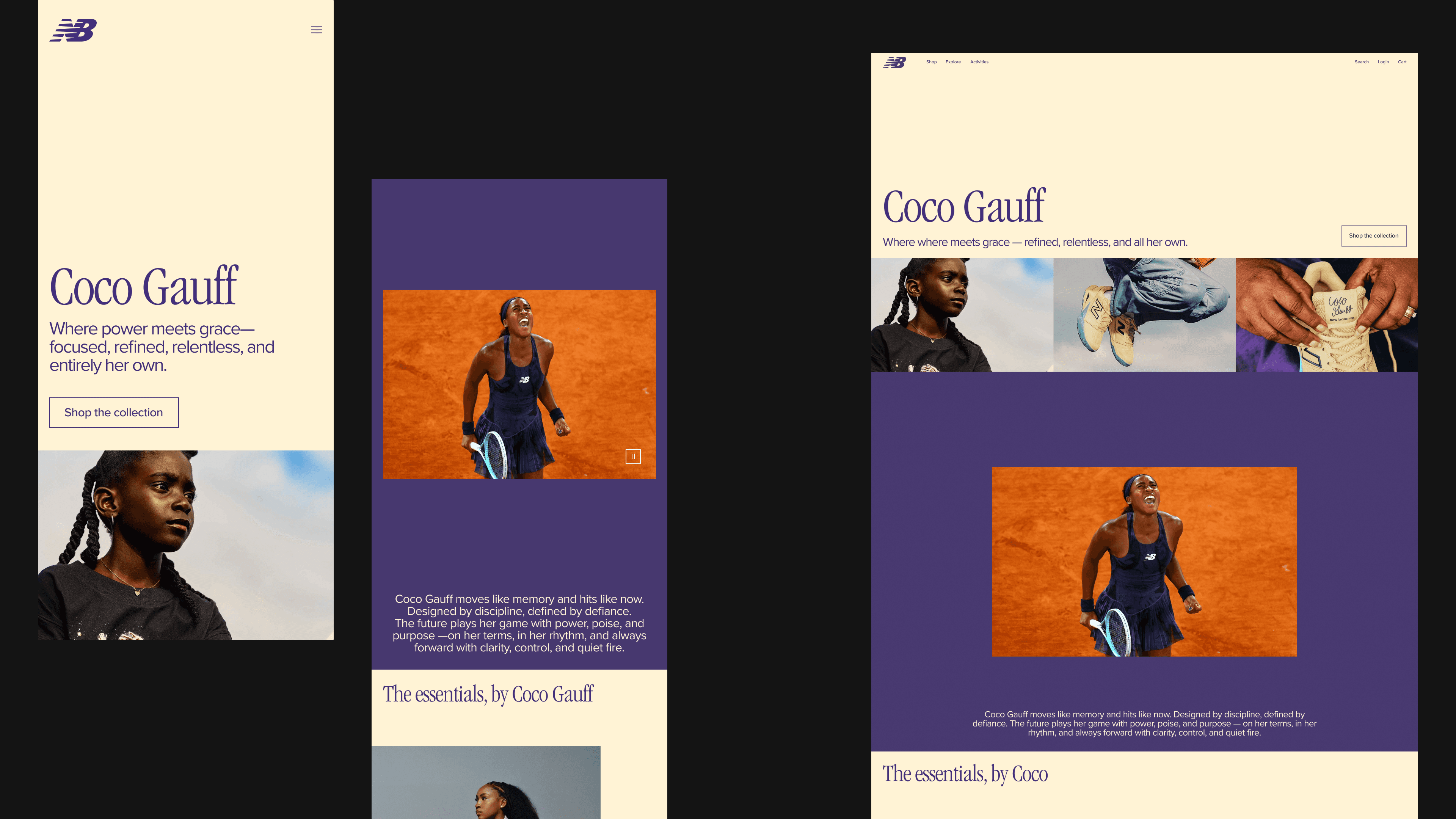 Engineered to seamlessly flex across diverse cultural and sporting ”tentpole” moments, this toolkit is underpinned by a robust digital design system. It not only guarantees brand consistency but also empowers New Balance teams to efficiently create compelling experiences that command the importance and authority the brand holds in these significant moments.