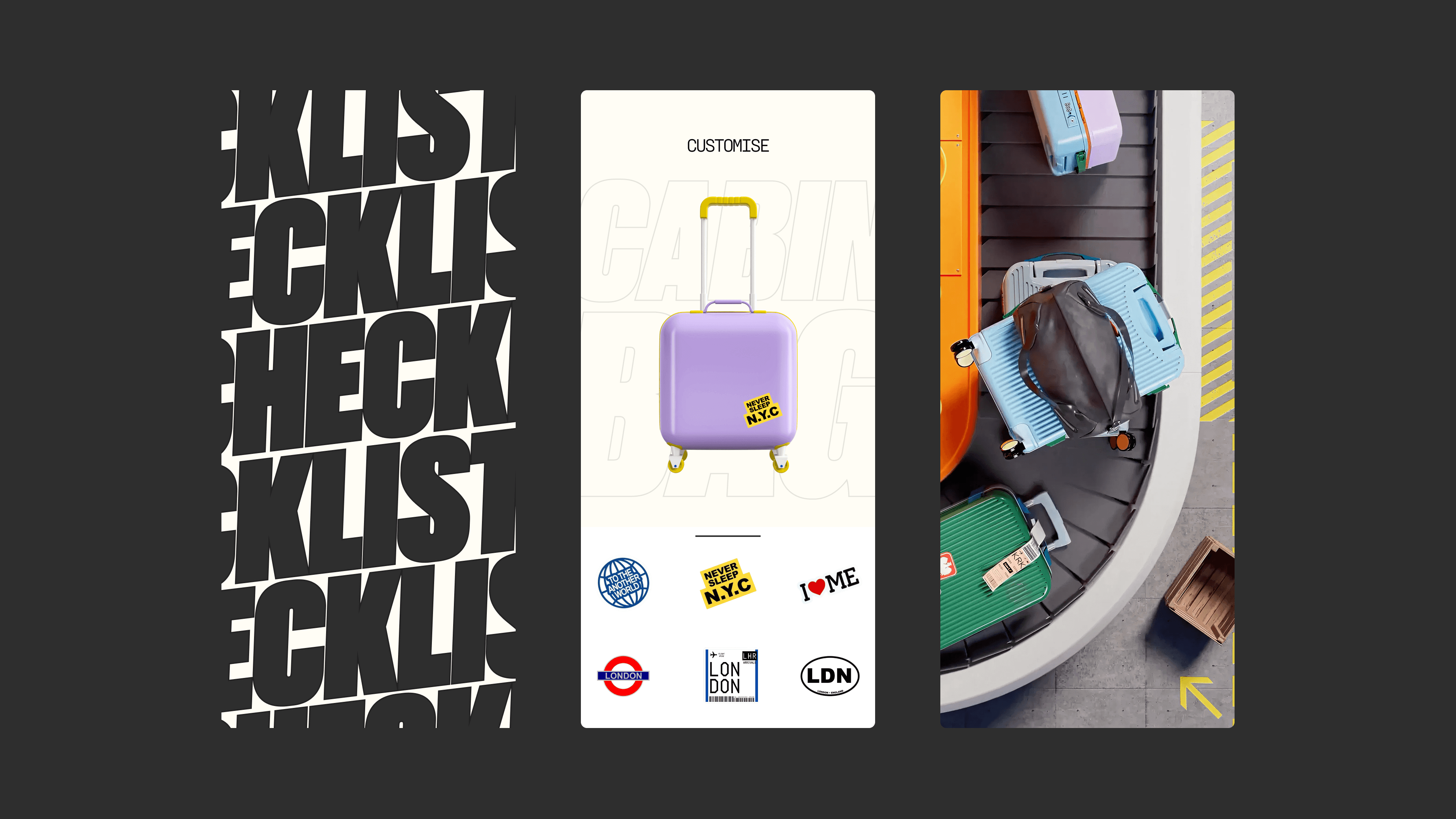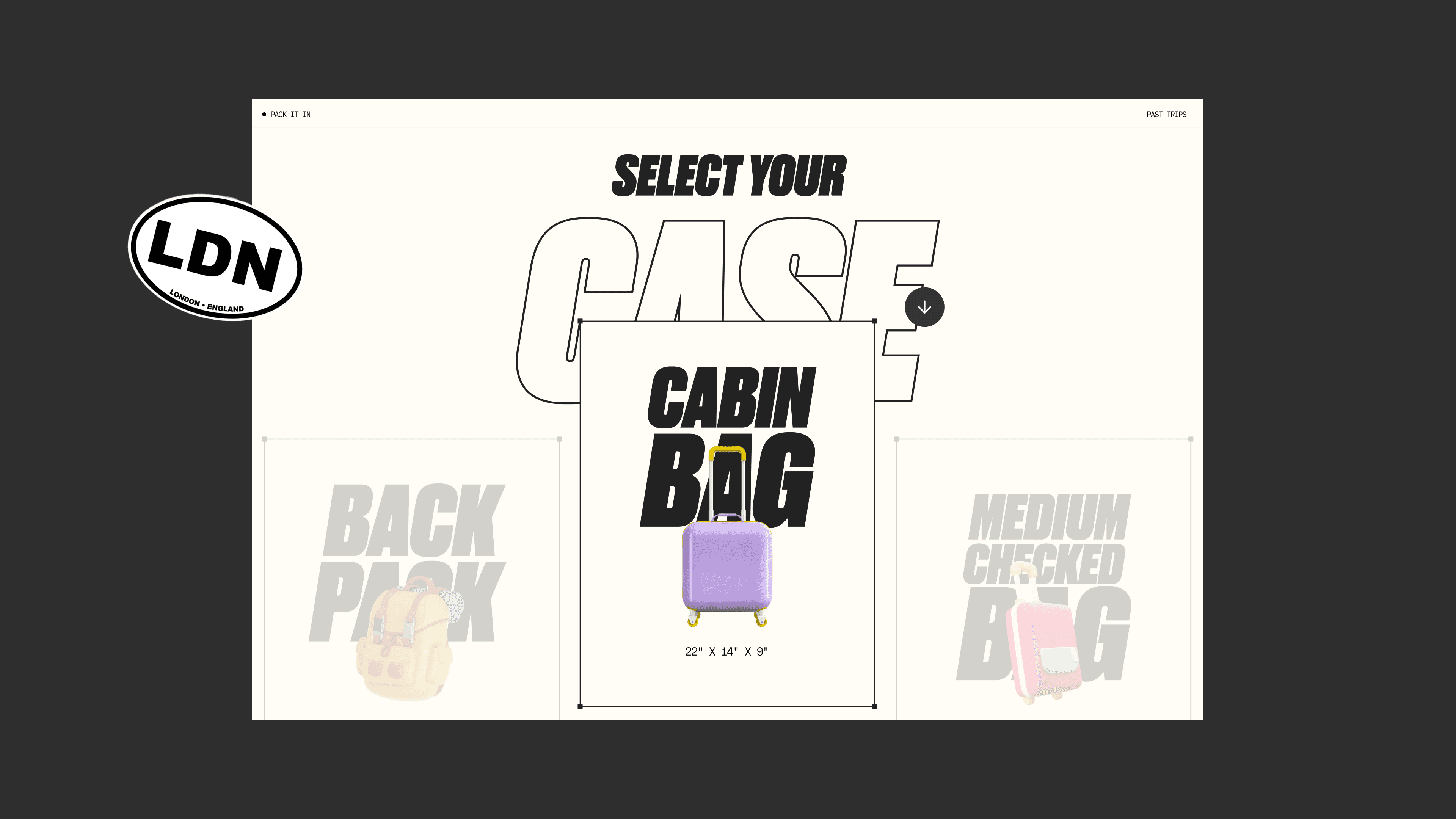 Mono-3D – a bold, modern design direction where monochrome squares hold 3D objects, reflecting how items are packed and organized. In Pack It, each movement, fold, and transition mirrors the act of packing—layers unfold with intention, guiding the user through the space.