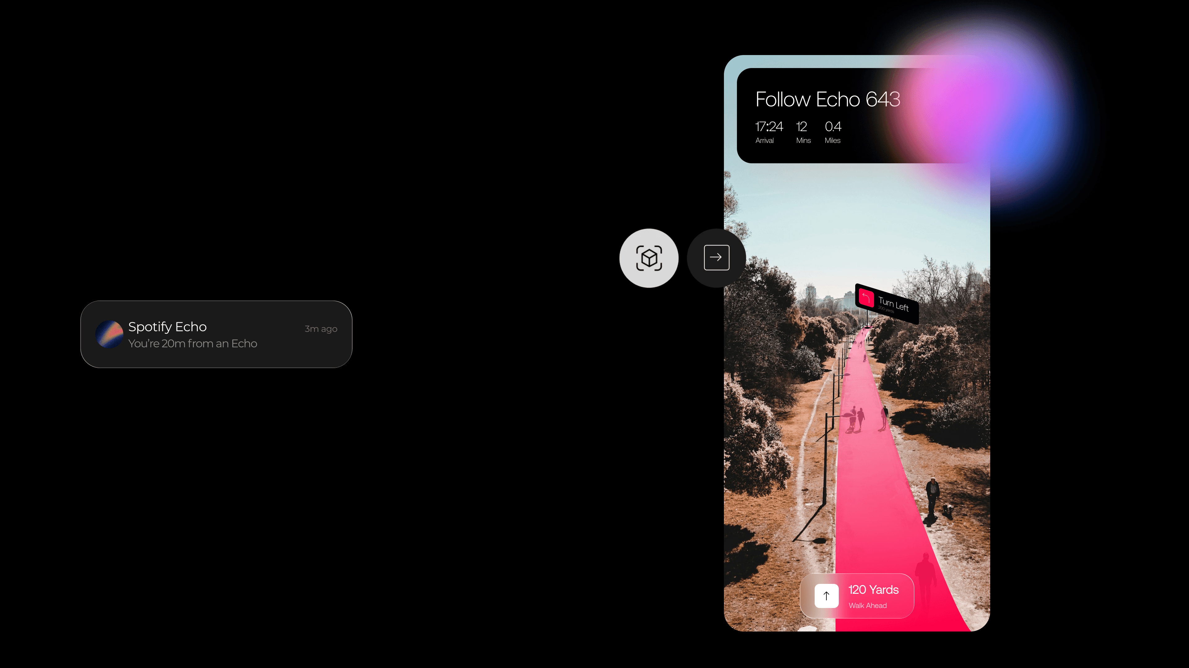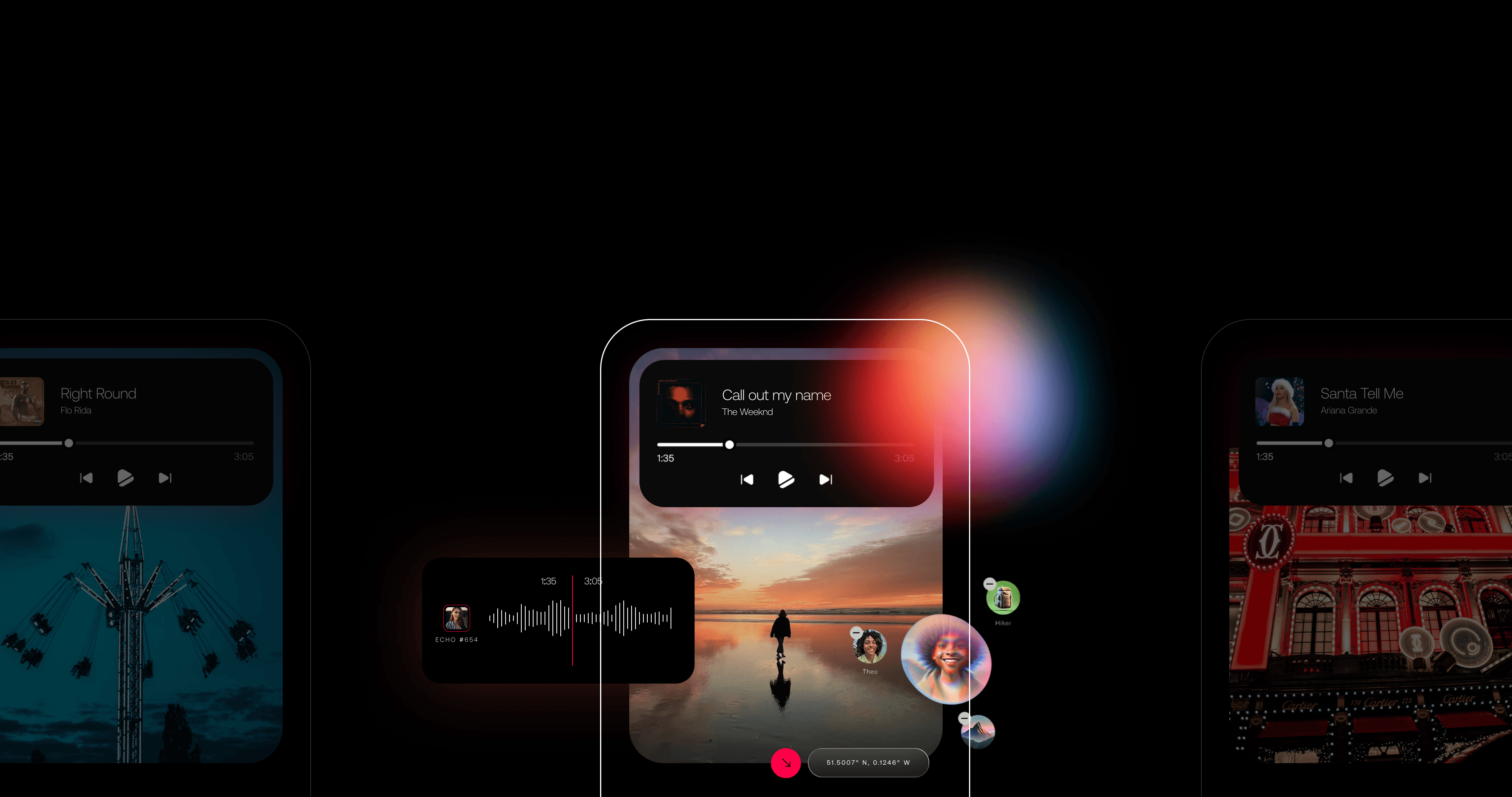 Echo lives between physical and digital space, so motion drives the experience. Directional 3D audio subtly guides users toward nearby moments, while restrained haptics reinforce proximity in a way that feels instinctive rather than intrusive.